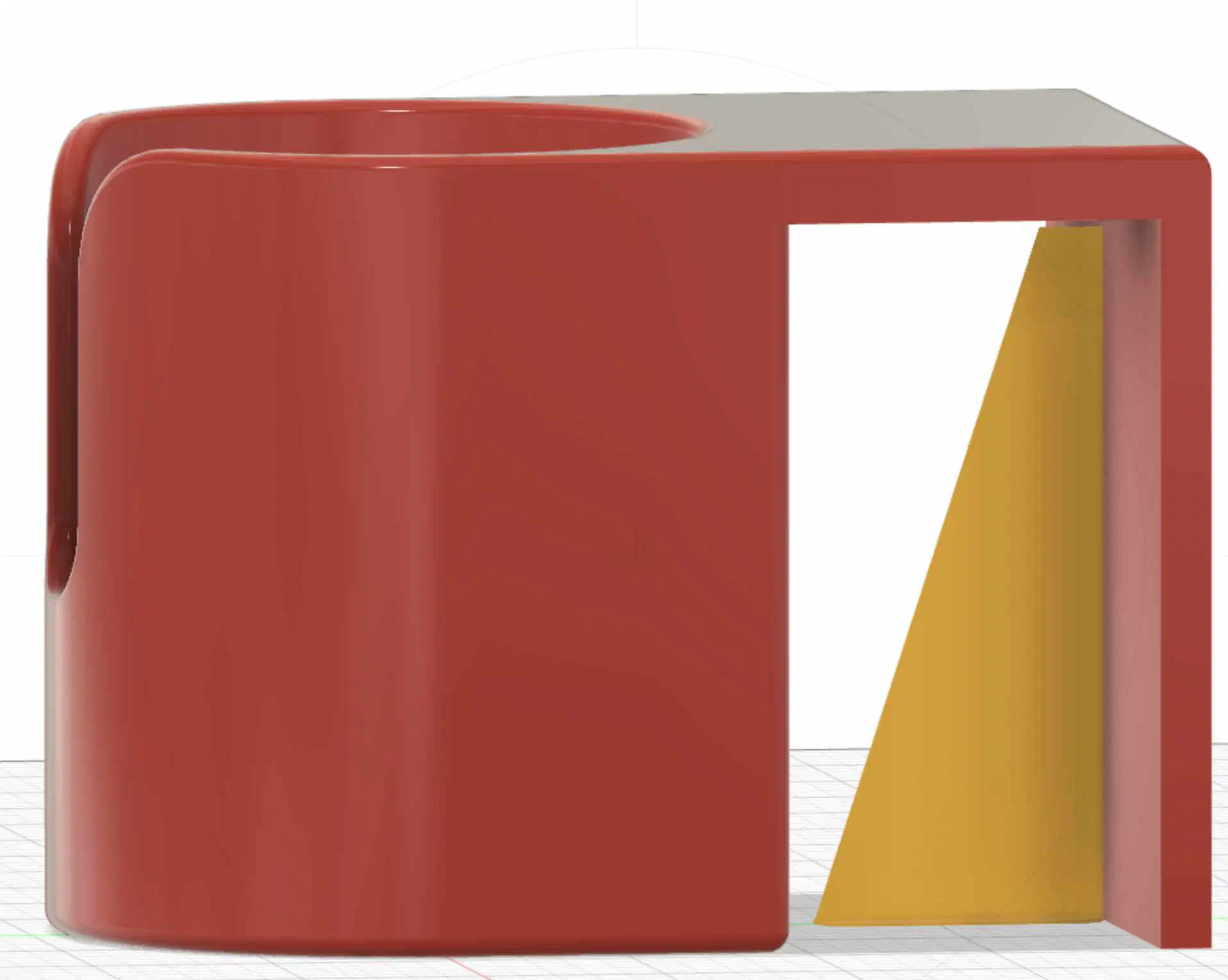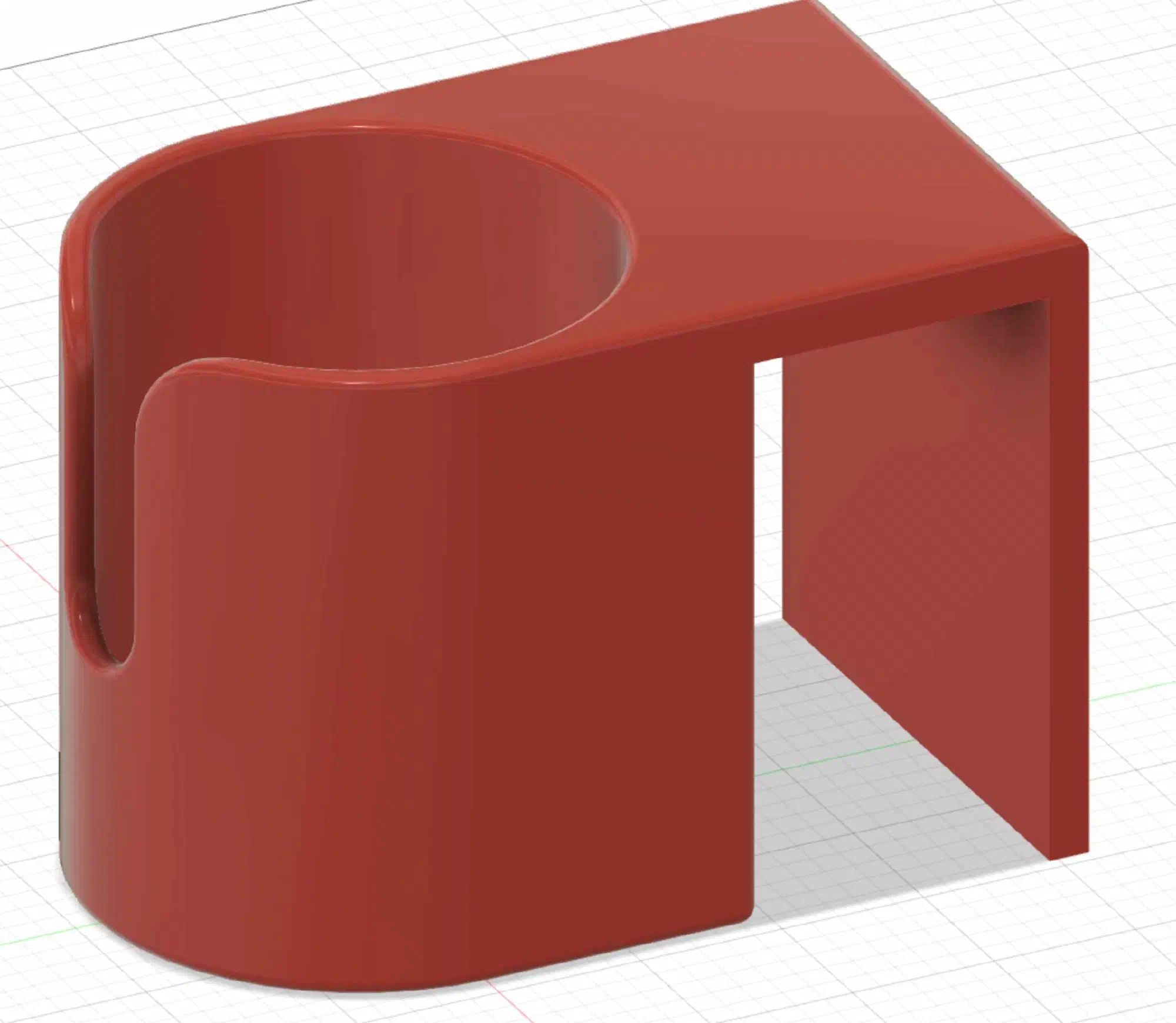 Um solche Krüge (es funktionieren aber auch ganz normale Kaffeetassen, wenn die Größe passt) am Kopfende eines Ikea Malm Bettes (das mit Überwurf ein wunderbares Lümmel-Tagesbett abgibt) zu befestigen, habe ich einen einfachen steckbaren Getränkehalter konstruiert und gedruckt.